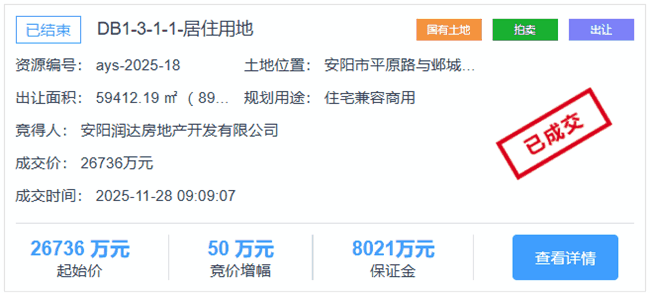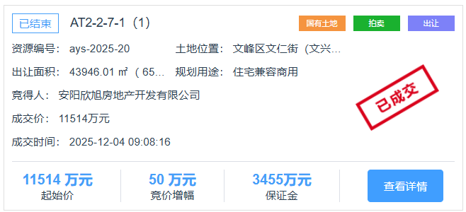 12月4日,安阳土拍市场又迎来住宅地块出让。